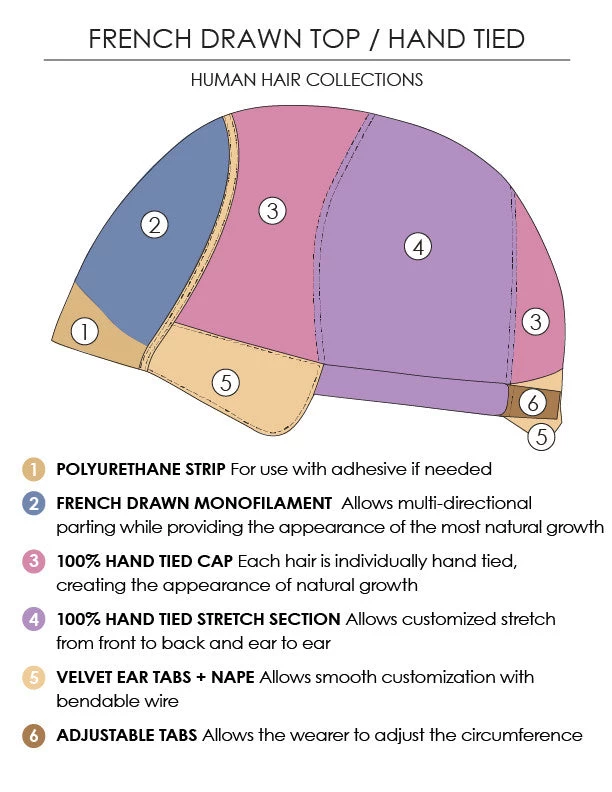 With 100% remy human hair, Cara features softly layered bangs for rich, luscious tresses. This shoulder-length bob is hand tied by French knotting – a superior knotting technique that offers the most natural looking growth of all human hair wigs