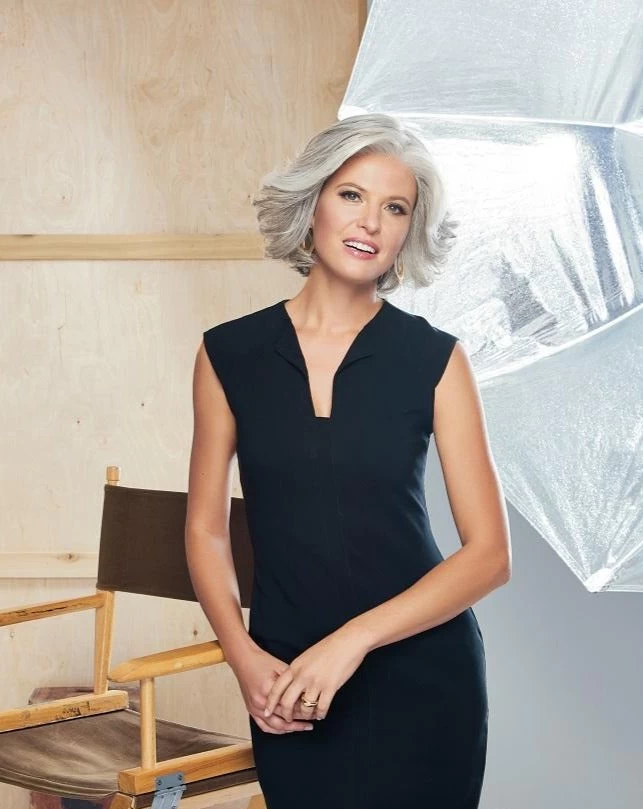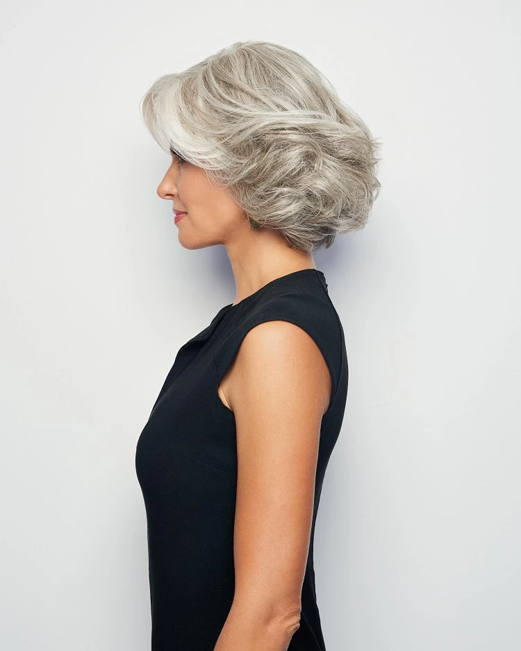 The Crowd Pleaser Wig by Raquel Welch is a stunning, polished mid-length style with light waves. It includes dramatic side swept bangs and long, subtle layering throughout.
