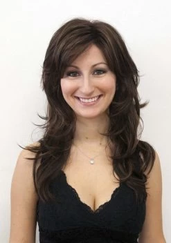 Faye Wig by Godiva’s Secret Wigs is a long wig with lots of shag layers. The bang is a little long and can easily be trimmed by your stylist or swept to the side. This style is full of gorgeous layers and can be pulled off of the face using a claw clip or pulled back into a low ponytail.