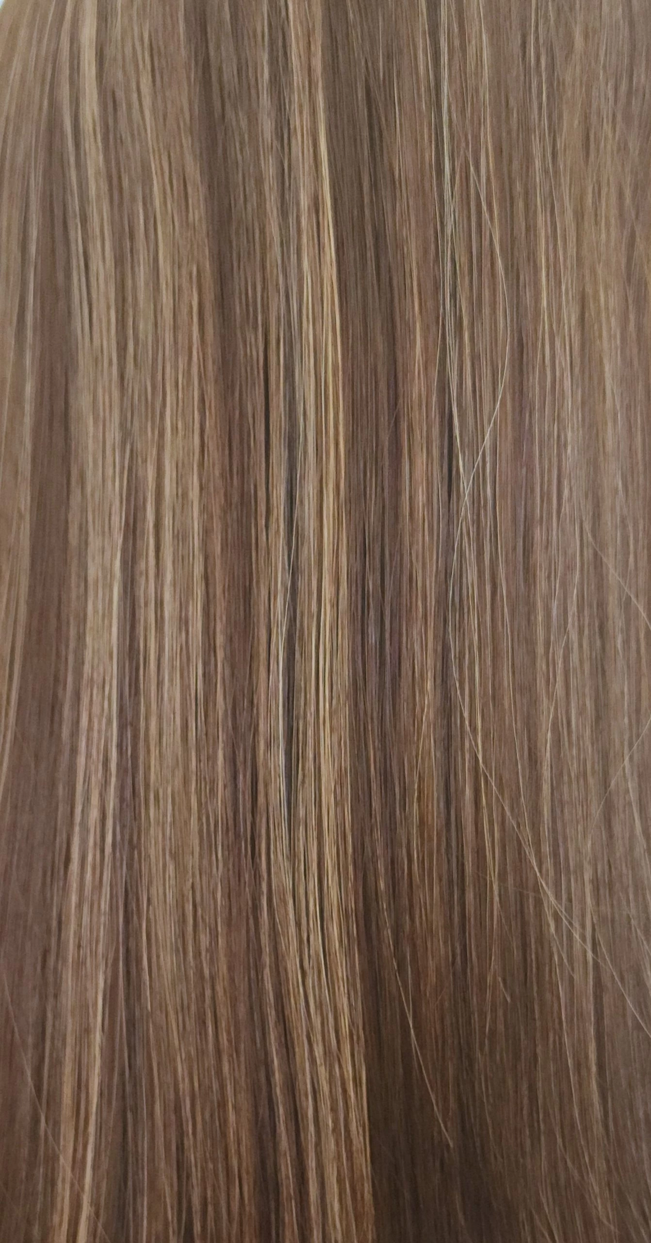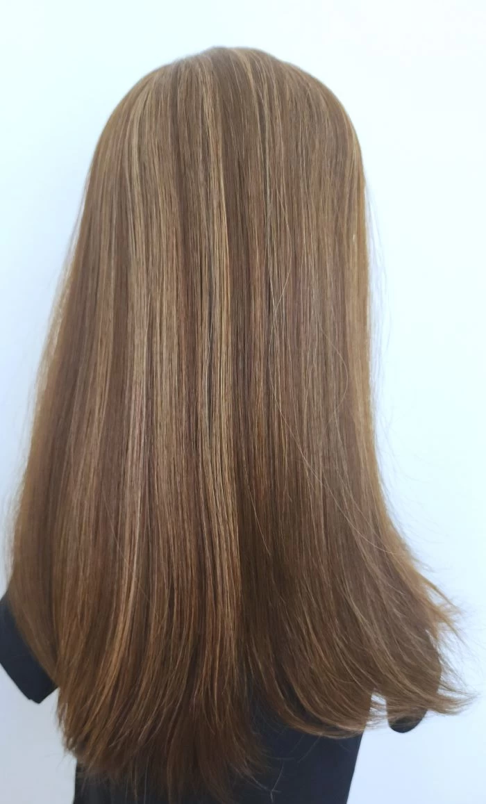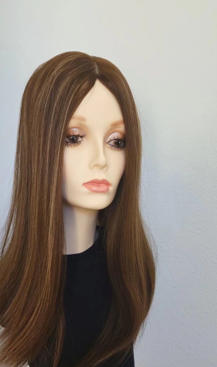 The Fearless Topper by PUSH is designed with Remy European human hair. She features a silk top that allows you to part wherever you’d like. Four pressure-sensitive clips around the wefted base allow you to clip the topper into your biological hair for instant coverage and volume where you need it most. The hair texture is soft and straight with a slight wave after a wash.