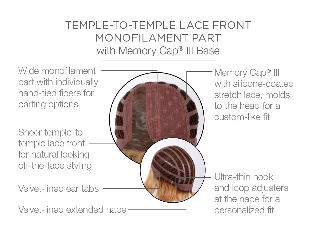 Monofilament Part | Memory Cap® III Base | Velvet-lined ear tabs | Velvet-lined nape - Weight: 4.01 oz