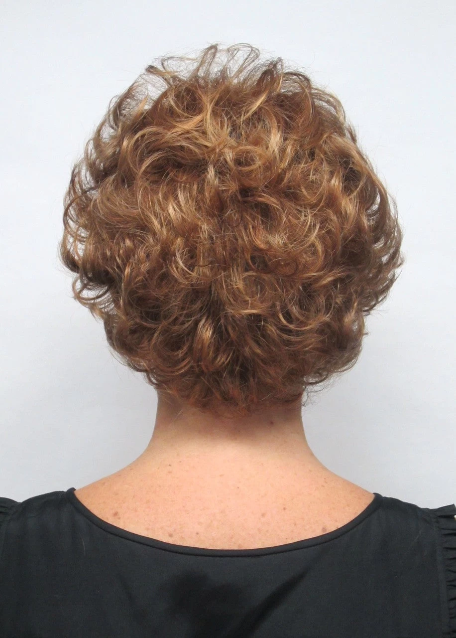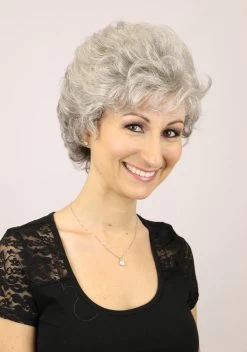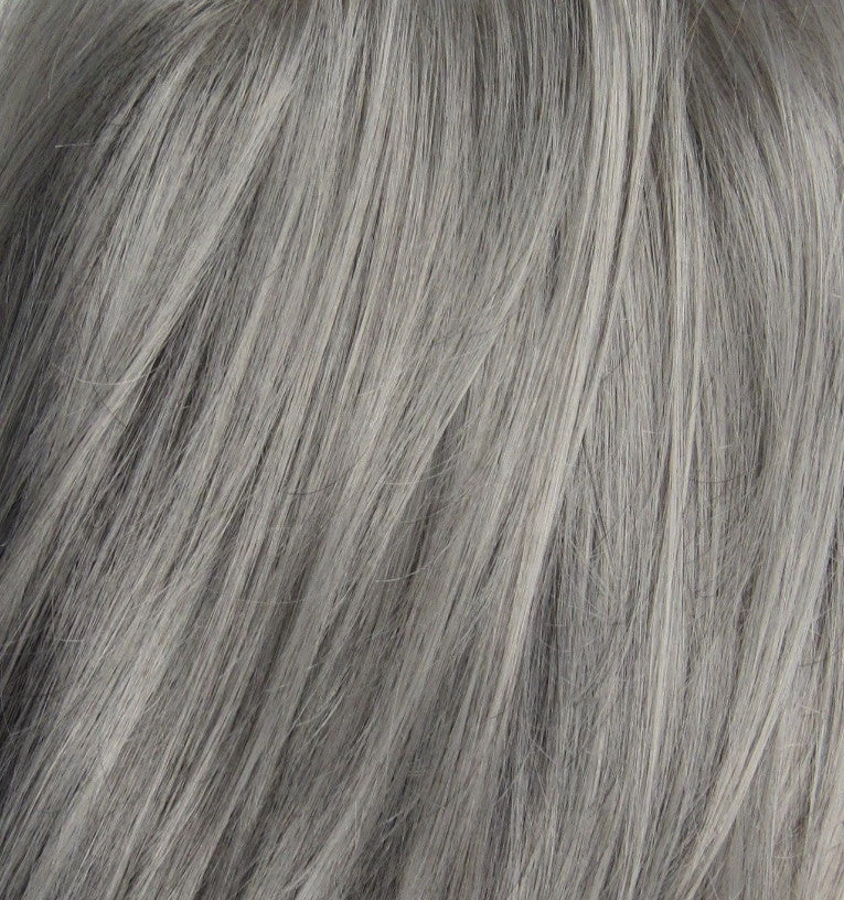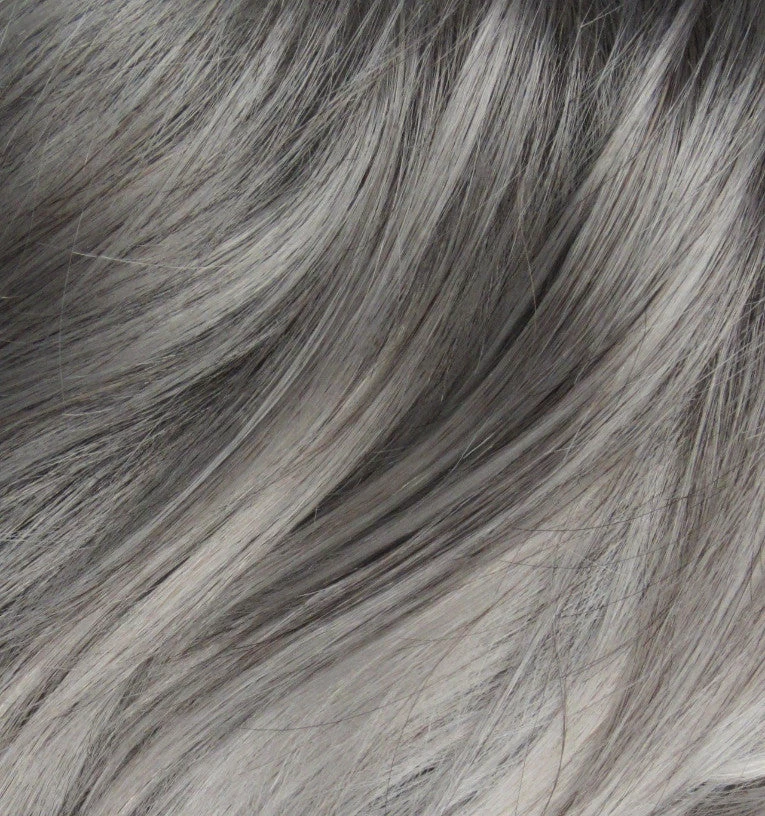 Shown in Silver Stone. This petite wig is 20″ in circumference. Petite Iris is a short and flippy style with a very layered back. It can be combed to flip extra or be tamed down for less flip.