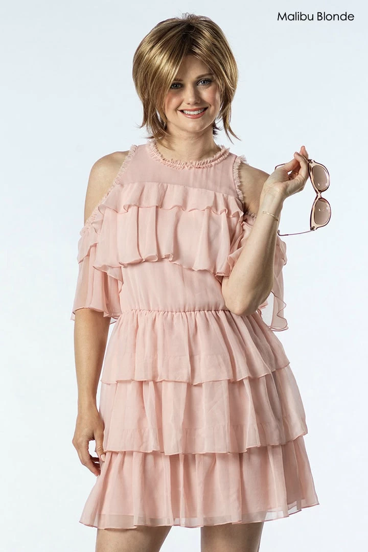 Karis is a modified Bob with a side fringe bang and shaggy tousled layers in the back with a long tapered nape. This carefree style has elongated sides that accentuate your cheekbones. On a Ready-to-Wear LaceFront, MonoLux is a quintessential look that is good on every face shape.