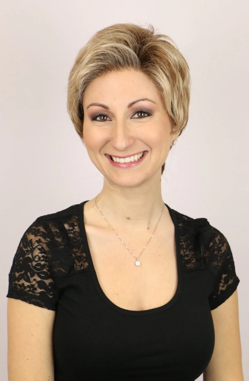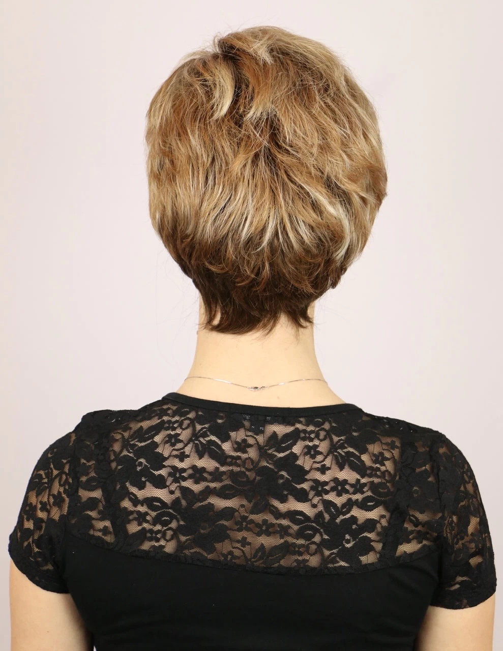 Mia is our shortest Lace Front Wig. She also has a Monofilament side part (on the left side of the crown). Mia (short wig) is also available in rooted colors.