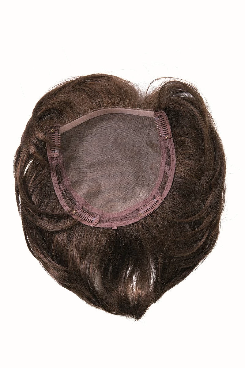 The Top Mono consists of 4.25″ – 5.25″ long hair on a monofilament wefted base that measures 6.3″ x 6.3″ with a polyurtheane strip along the front. There are four pressure sensitive clips that ensure a secure fit.